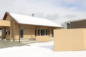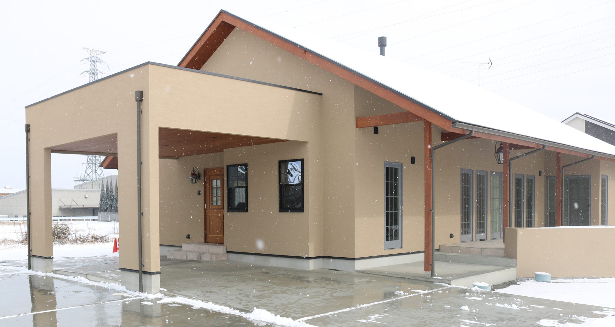 お引渡し当日は雪が降っていて雪化粧をあしらった姿が