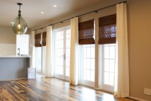 リビングの大きな窓にはカーテンが取り付けられ