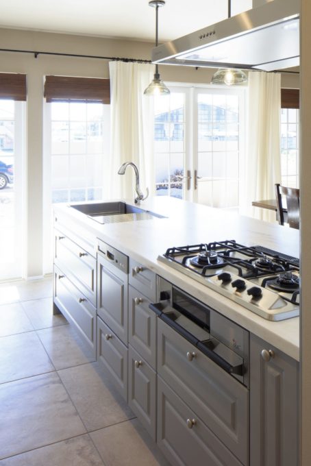 天板と同じホワイトでも質感が違い、料理をしながら目で愉しむことができます✨