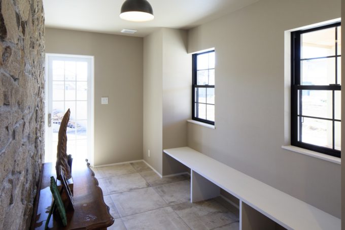 造作ベンチではゆっくり靴を履いて支度を整えることができます