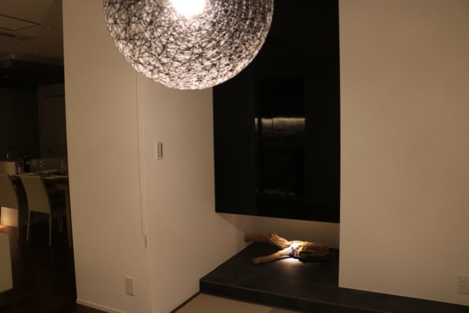 床の間のダウンライトやメイン照明の丸いフォルムは幻想的です😌