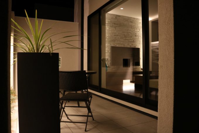 石張りの壁や植栽がオブジェとなり大人の贅沢な空間を演出してくれます😌