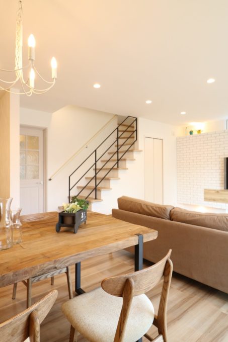 奥様がチョイスしたシャンデリアとペンダントライトもマッチしていて