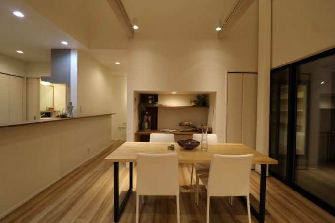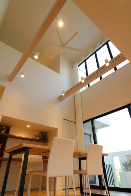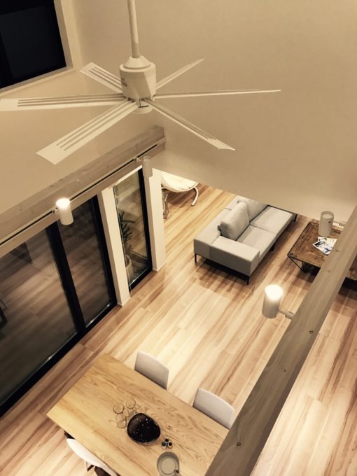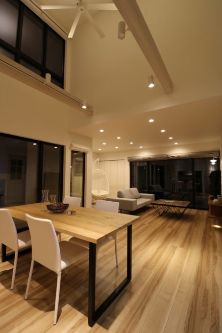 昼間の明るく陽射しが降り注ぐ吹き抜けも良いですが