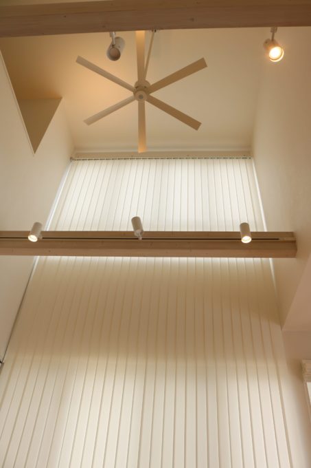 吹き抜け2階窓から1階までつながるタテ型ブラインド❕