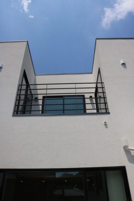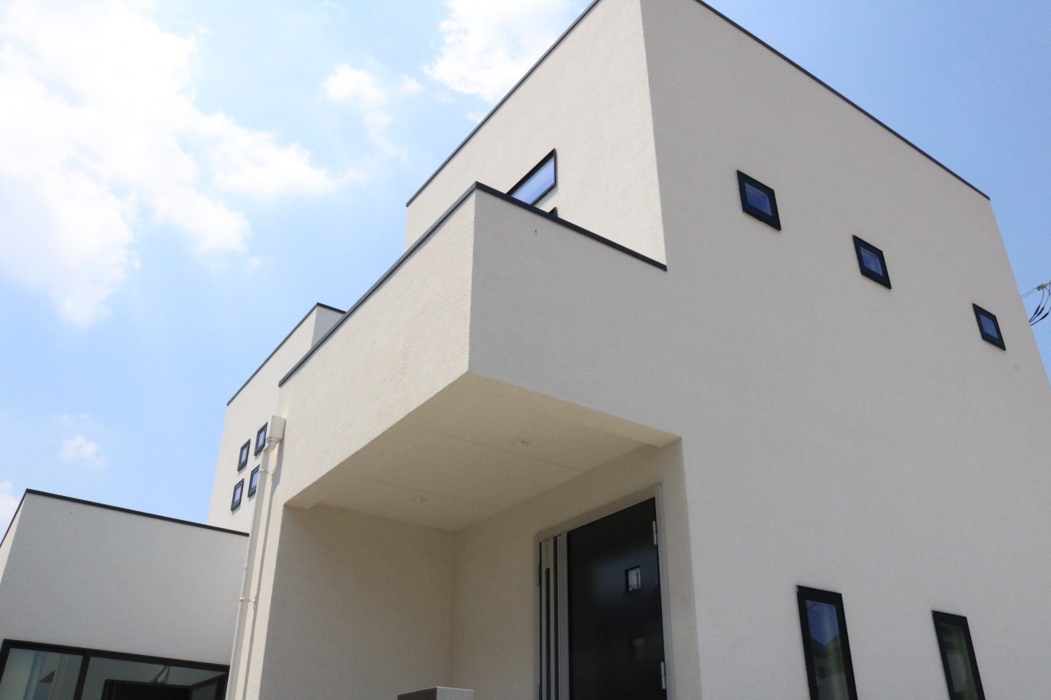 ホワイトの外観にブラックの冊子と笠木がアクセントとなり