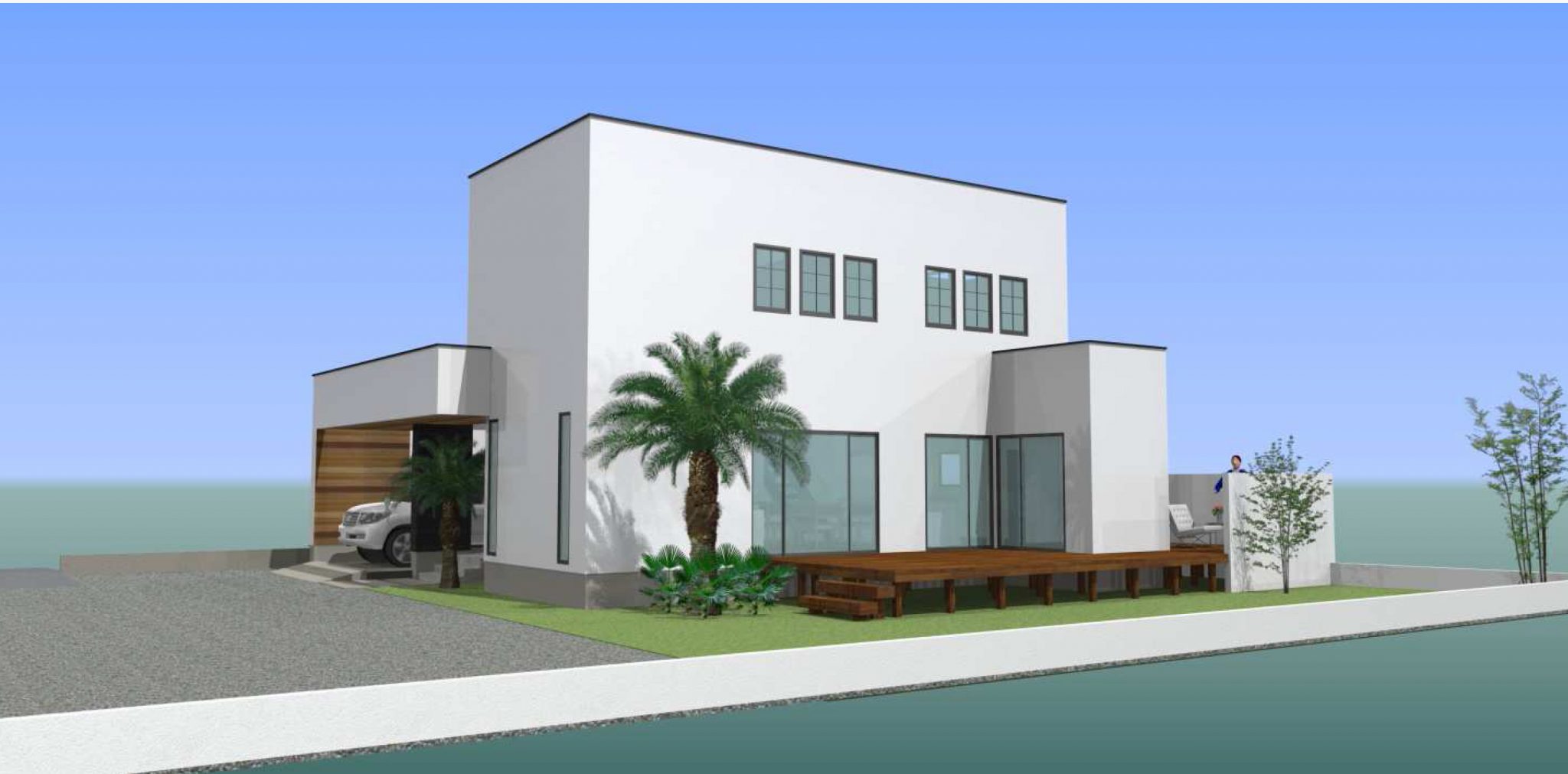 ホワイトの外壁にさりげなく覗くレッドシダーが粋ですよね✨