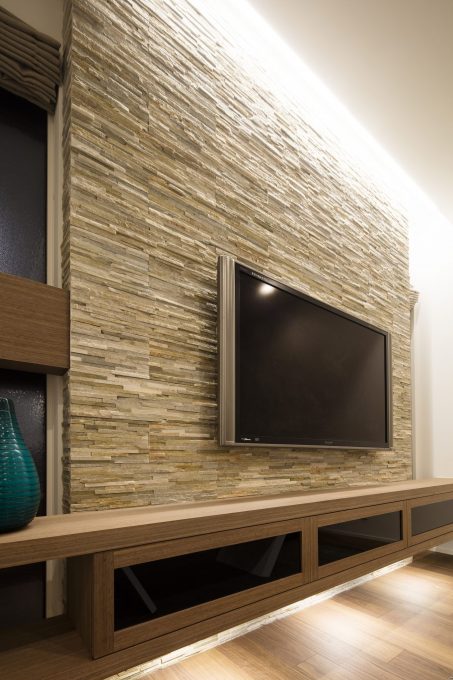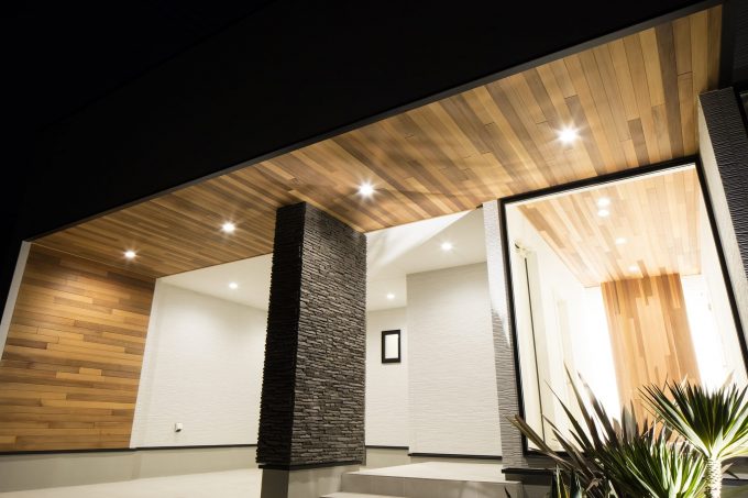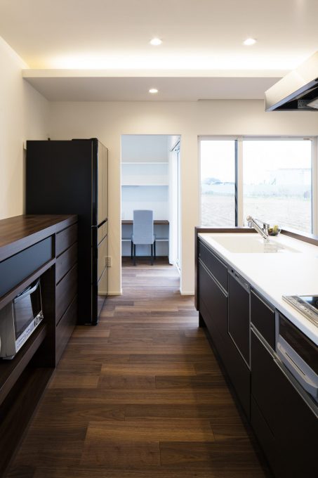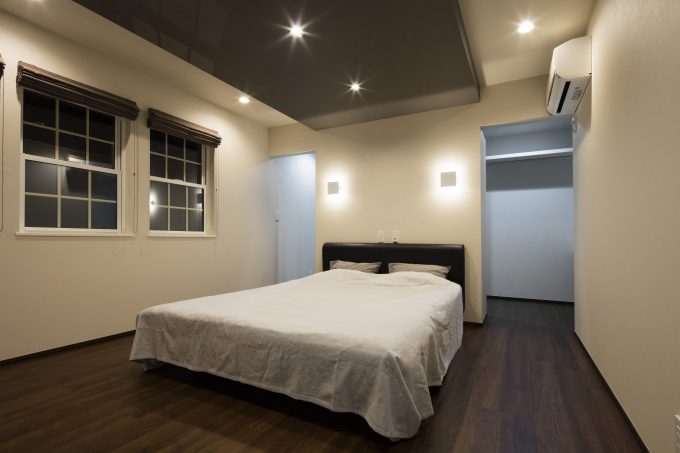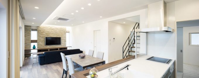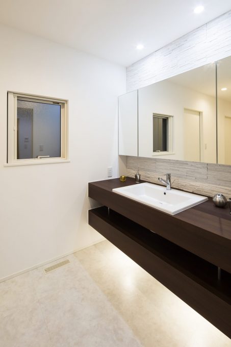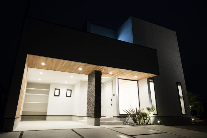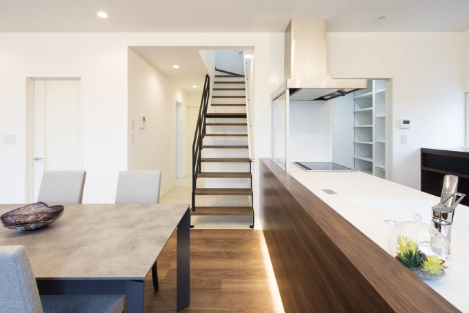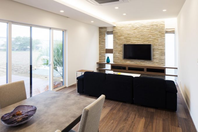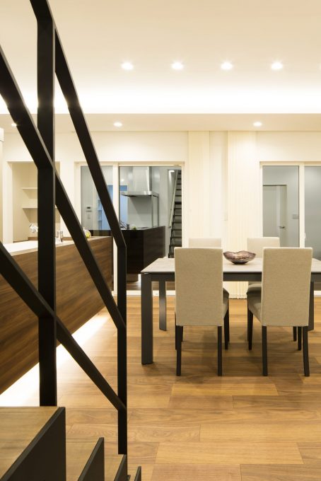 昼間の間接照明も良いですが夜の陰影やTVボード、キッチンの下部の