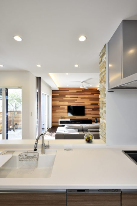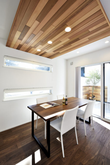 メインウォールとダイニングの下がり天井部分の