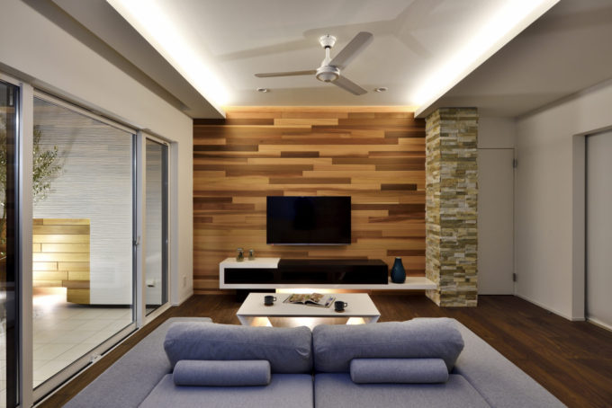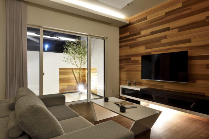モダンテイストの造作TVボードが