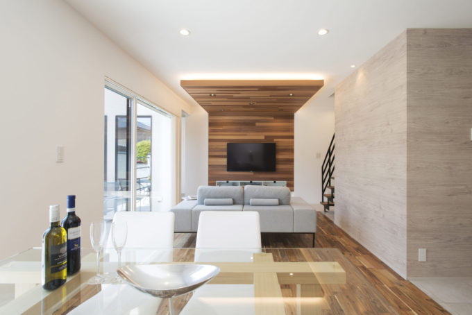 リビング階段は半スケルトンで