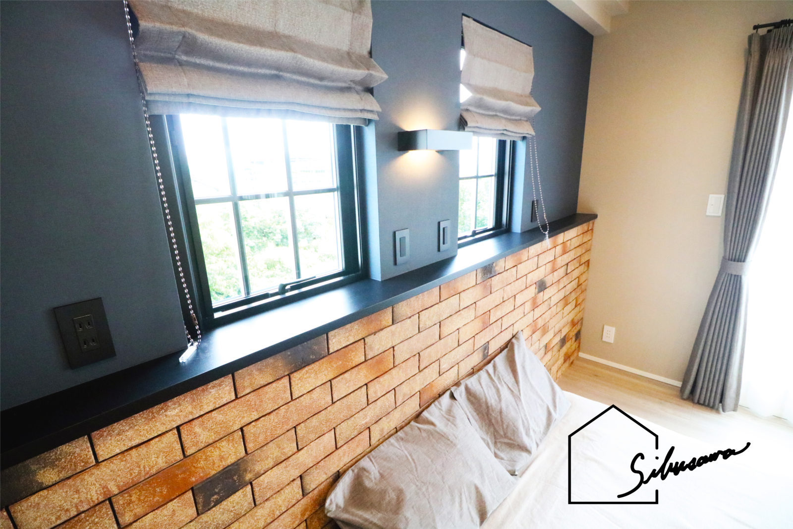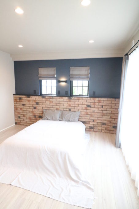 ダークグレーのアクセントクロスを合わせ