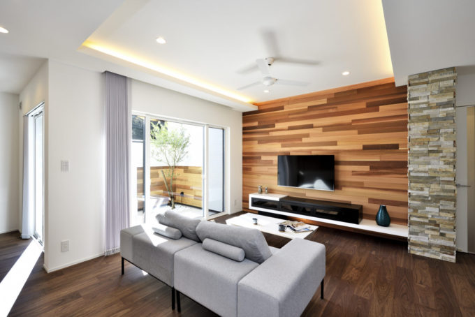 重厚感ある素材を使ったLDKのなかに