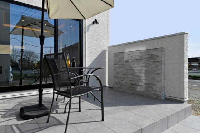 グレーの石張りでアクセントを効かせ、
