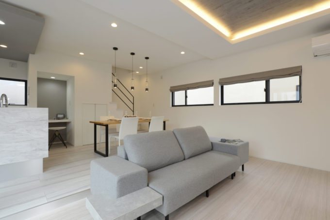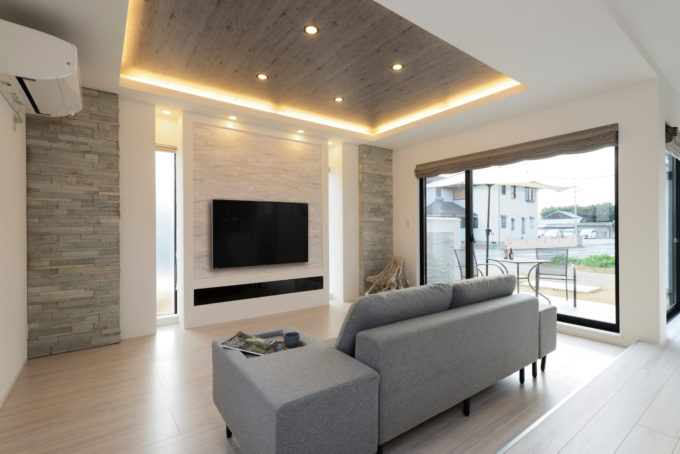 リビングは折り上げ天井になっているため