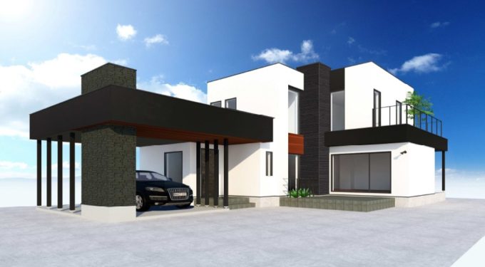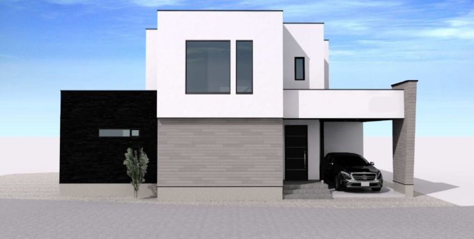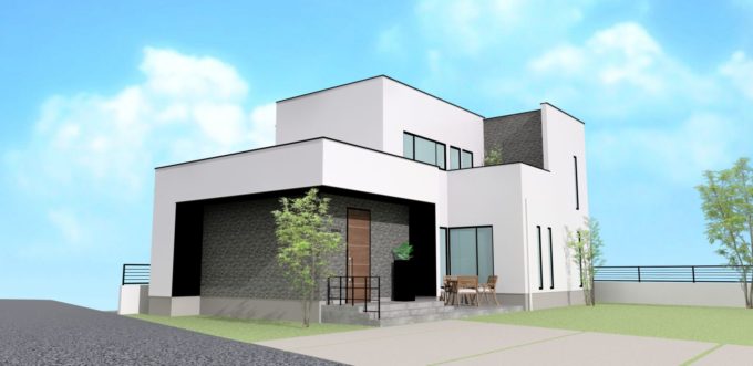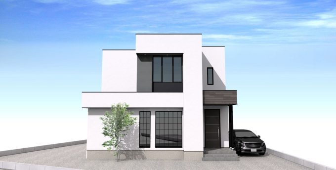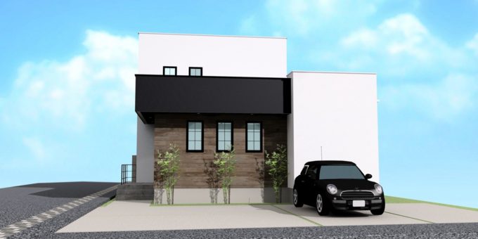 ブラックがアクセントのシンプルモダンな外観に