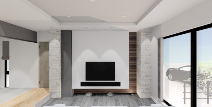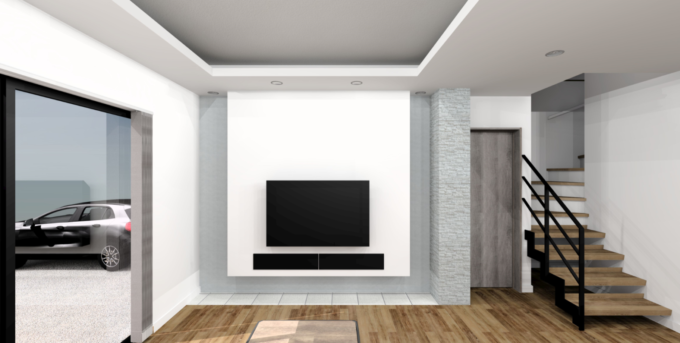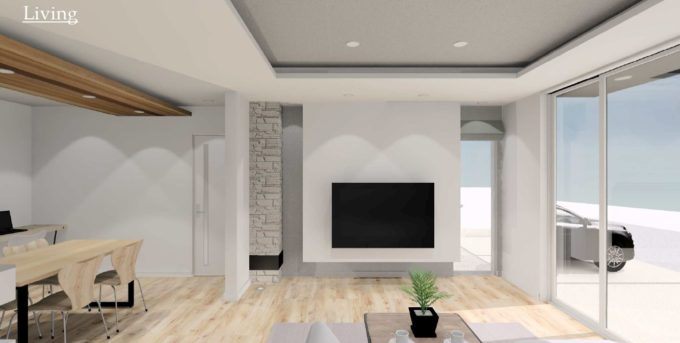 室内はリビング位置に落ち着きを持たせた