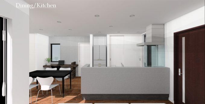 キッチンに立つとリビング・ダイニングが見え