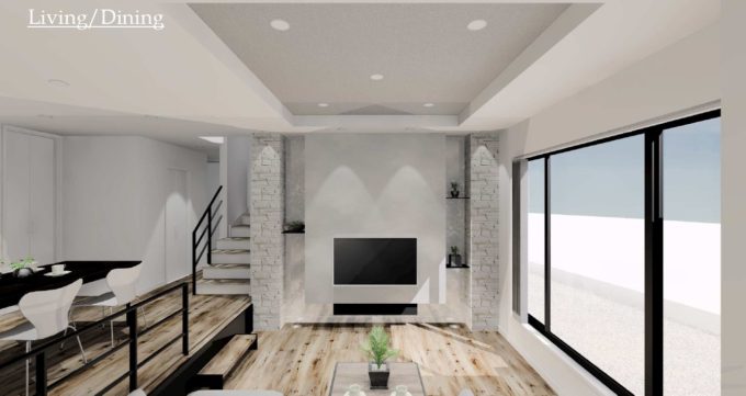 リビングを2段下げることにより
