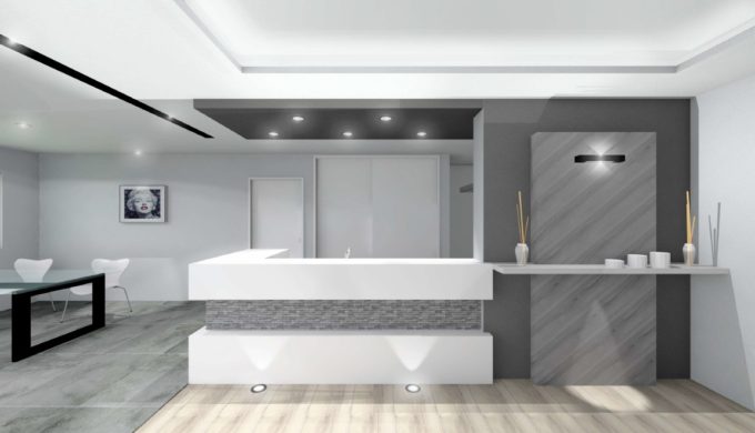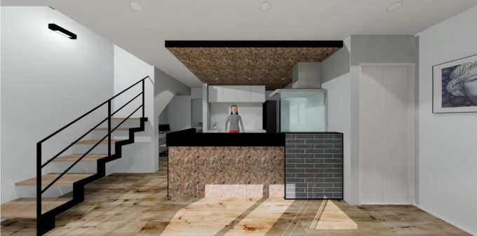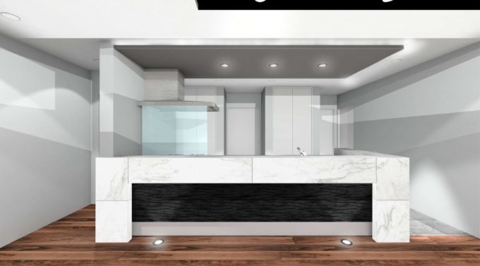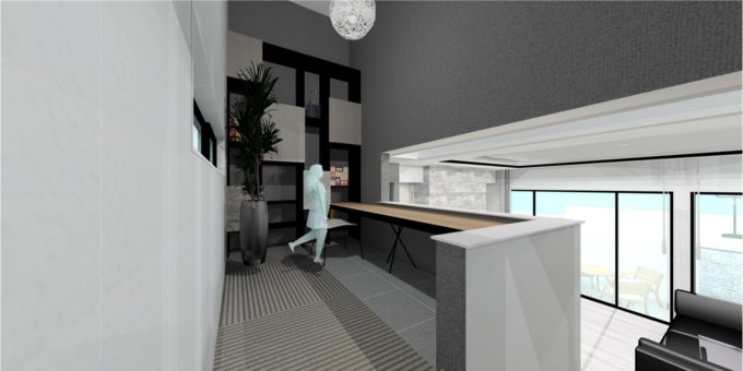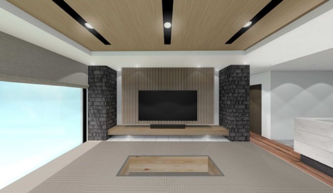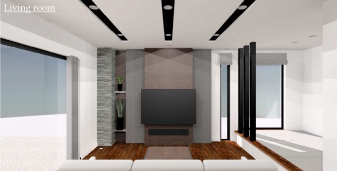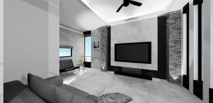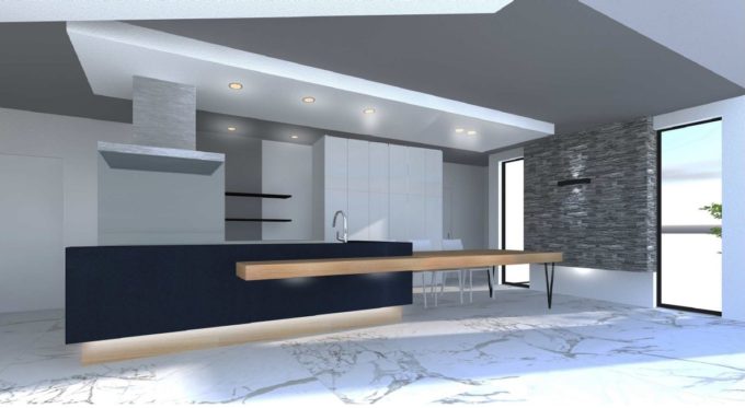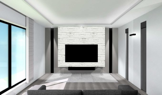 ブラックとグレーの石張りバランス良く、大胆に使用した
