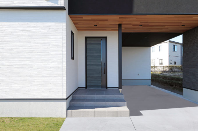 ブラックのガレージ軒デザインがアクセントに…🏠