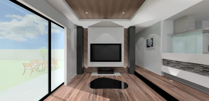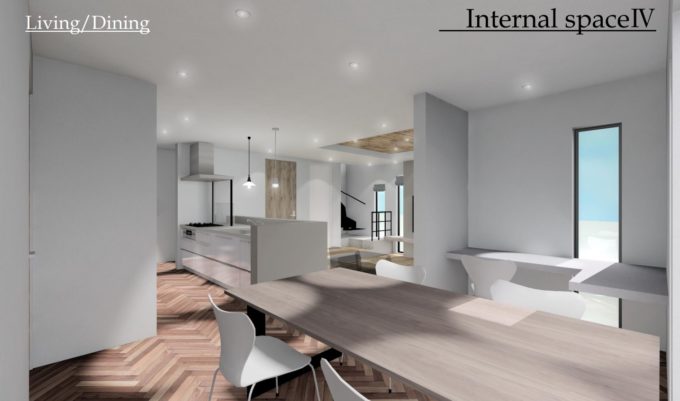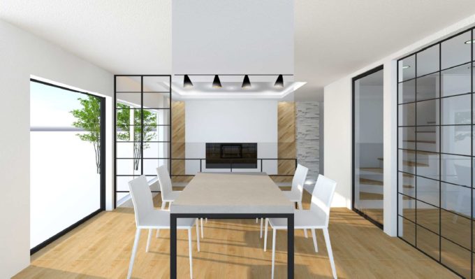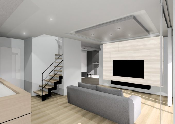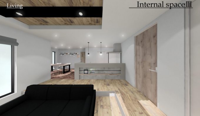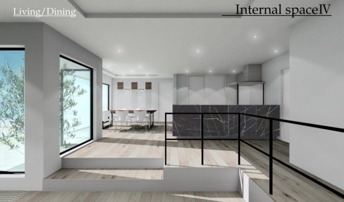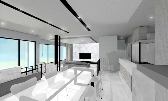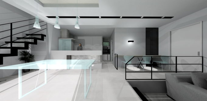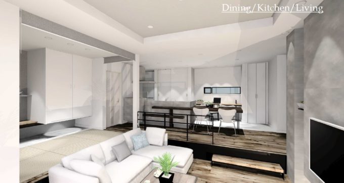ダイニングとリビングの床を2段下げ、