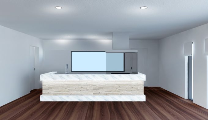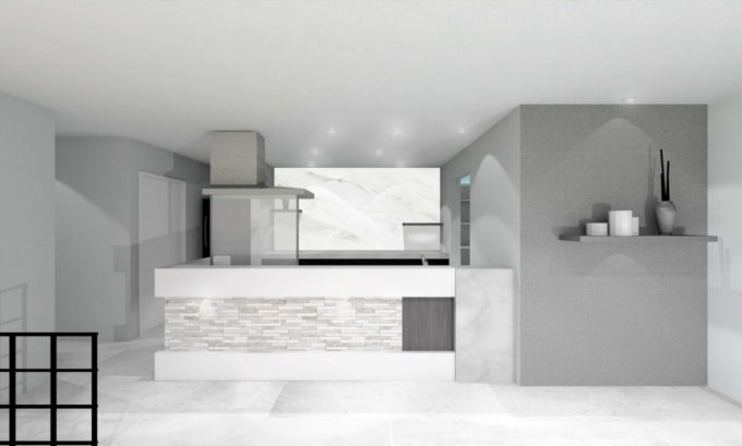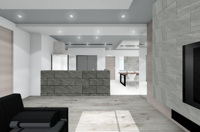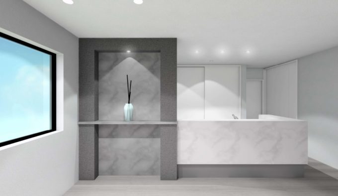 大理石調の床やグレーを使用することで