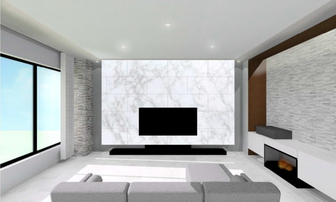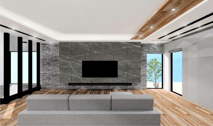 石張りとタイルを使用したメインウォール😆