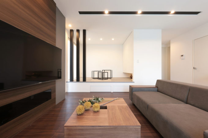 ダイニングにはあえてダイニングテーブルを置かず、