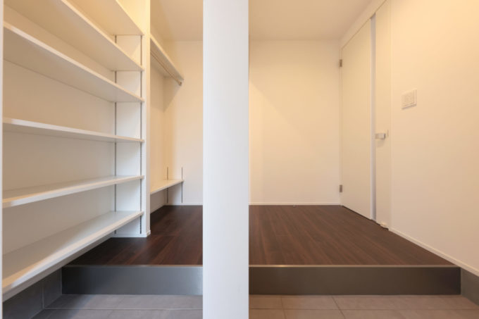 ぐるっと回れる広々としたシューズクローク…