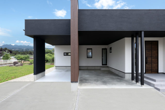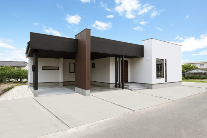 車2台分のカーポートガレージが主役な外観🏠