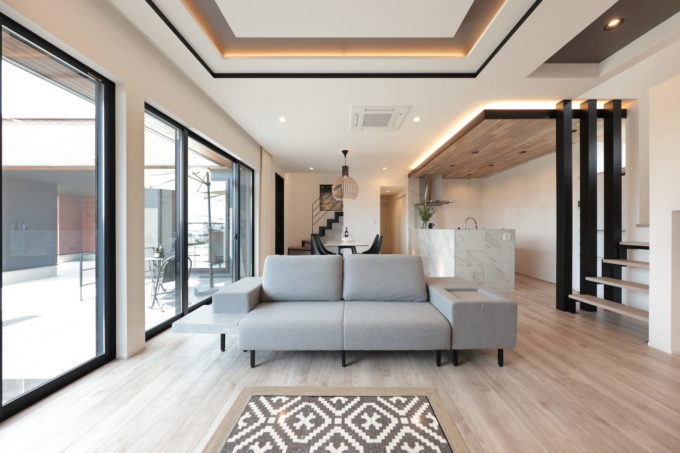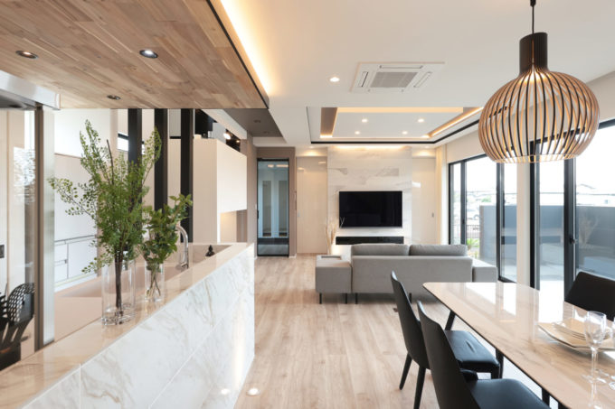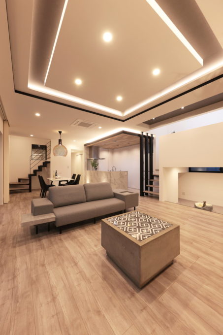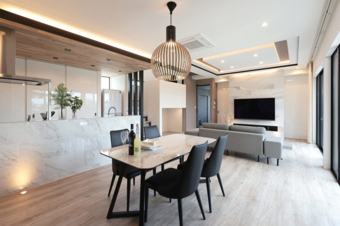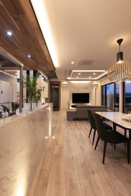 LDK全体が美しく感じるよう天井や床など照明計画を