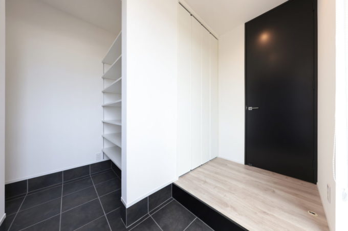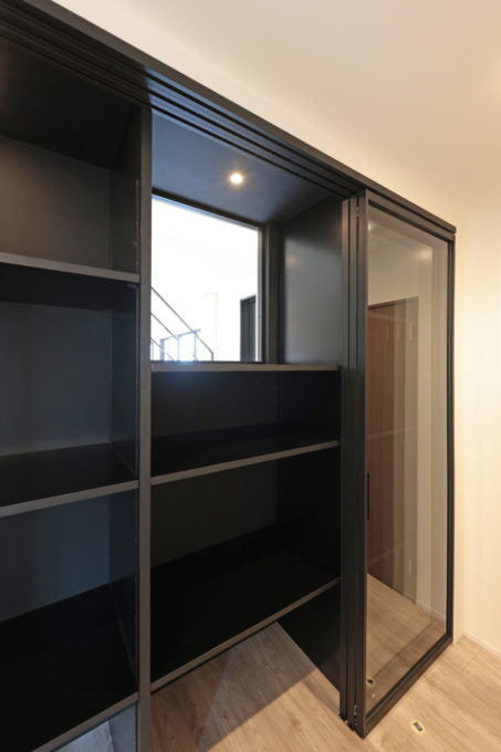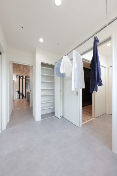 1Fトイレとメインベッドルームへ繋がる廊下途中から