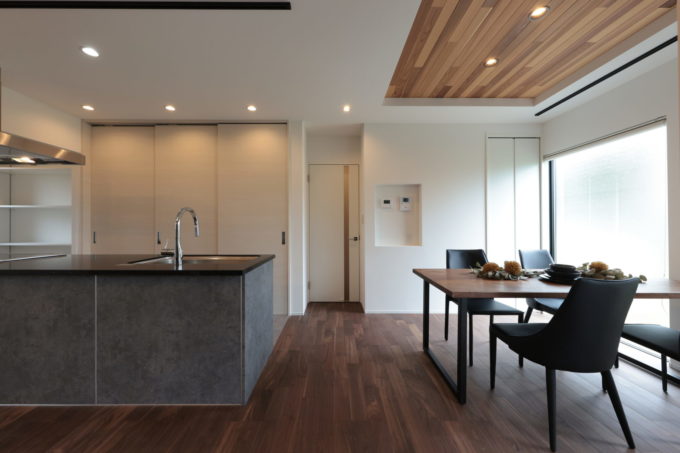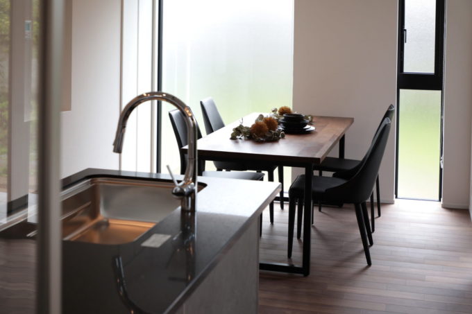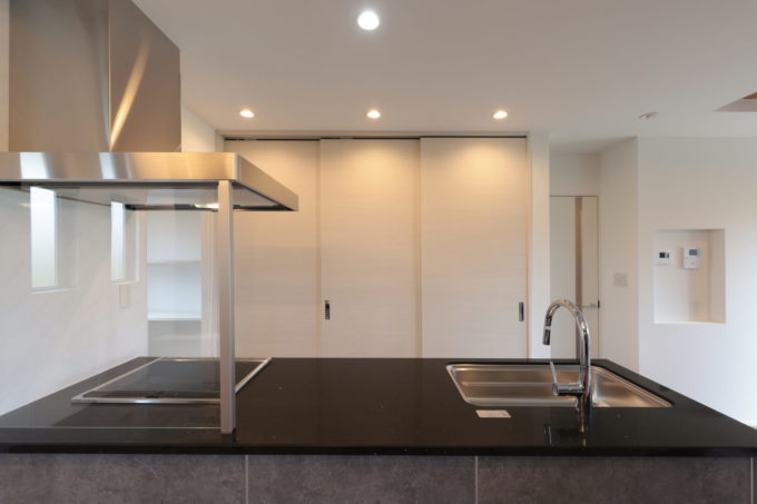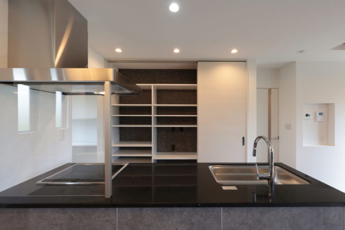 キッチンは、ブラック・グレーを用いて