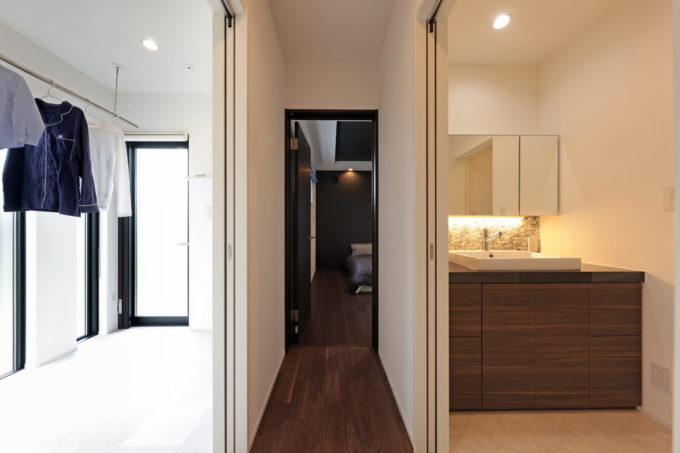 動線と繋がるベッドルーム。