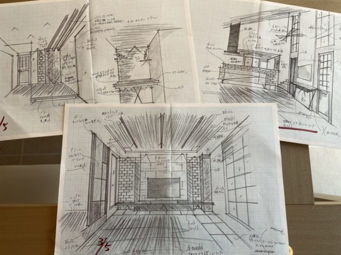 手描きデザイン→パース画→完成写真を