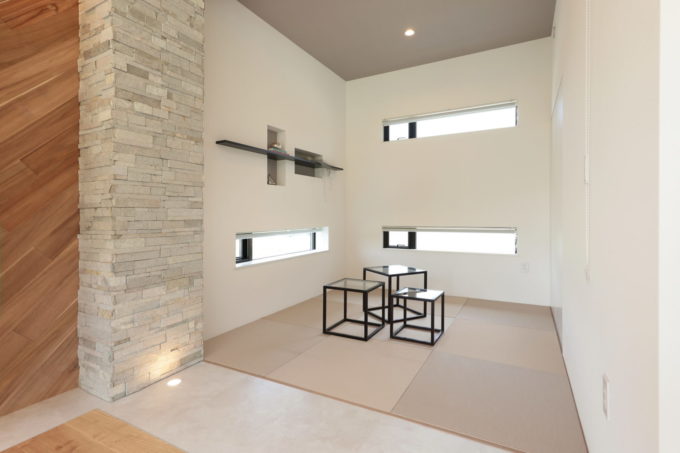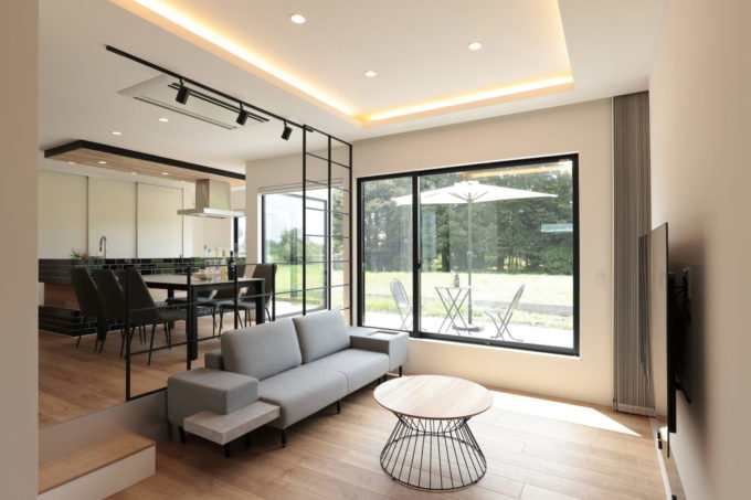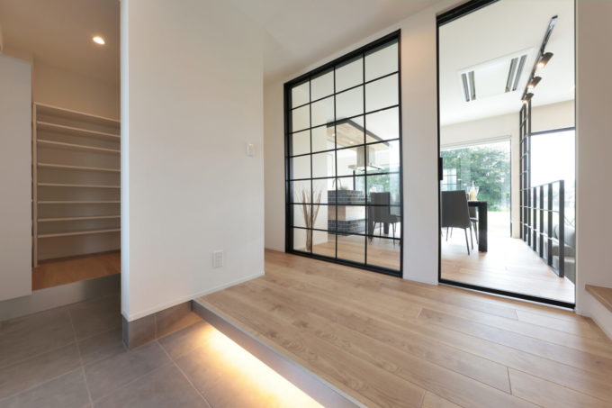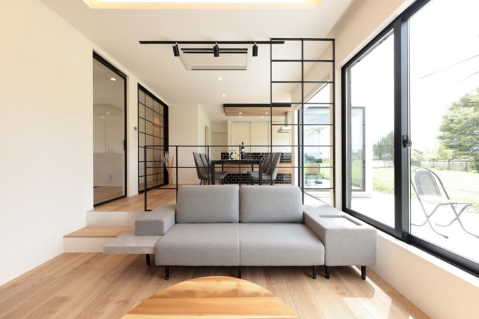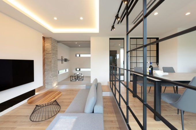 高低差とアイアンウォールが空間の変化と奥行きを感じられ、