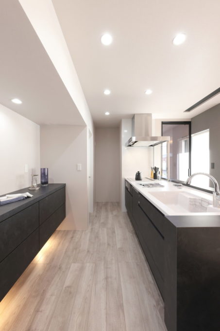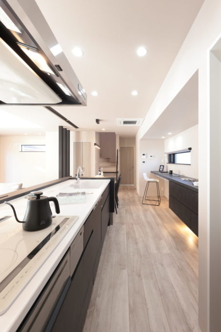 キッチンから始まる裏家事動線。