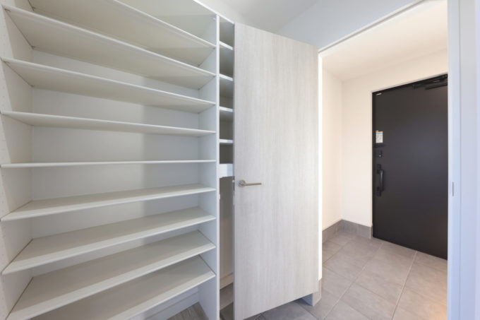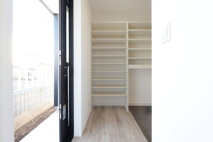 大容量のシューズクロークを配置することで、