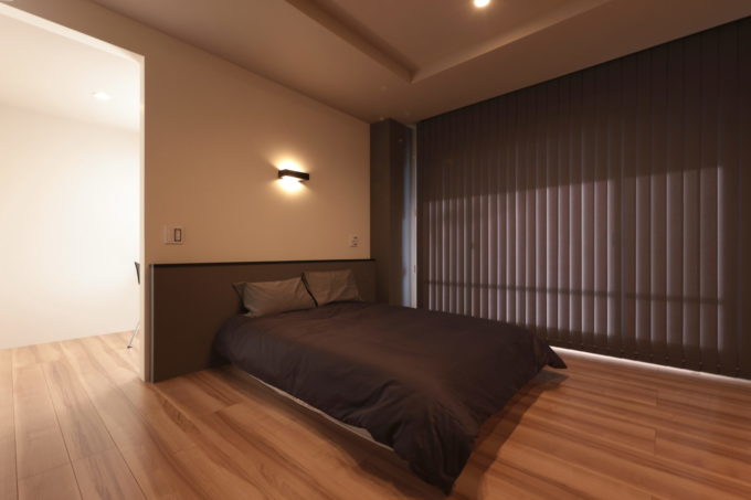 落ち着きのあるベッドルームの先に