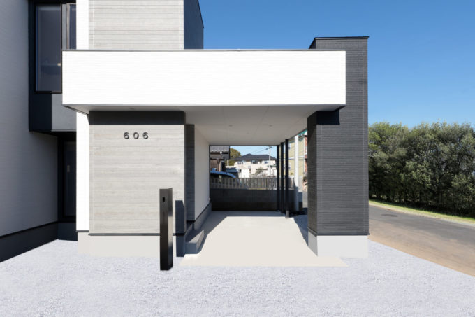 また、建物とガレージを一体化することでより存在感を…