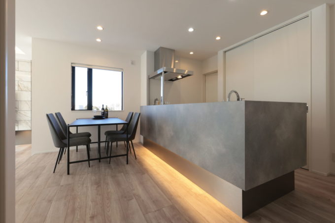 天井やキッチンウォールに間接照明が