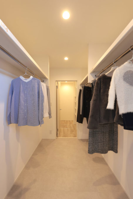 クローゼットからキッチンに通り抜けることができる、