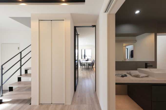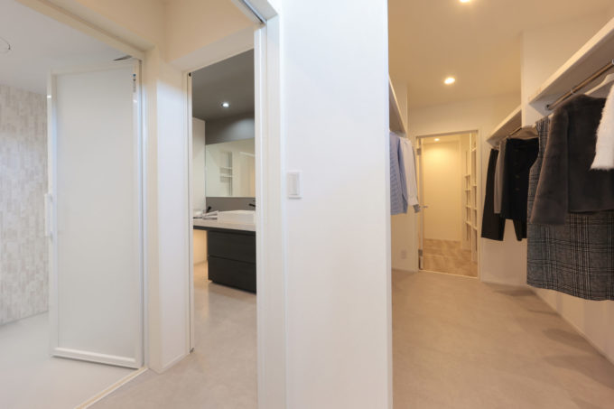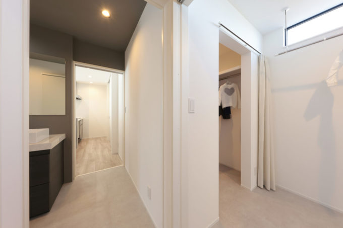 LDKと洗面スペースに行ける2way動線に…