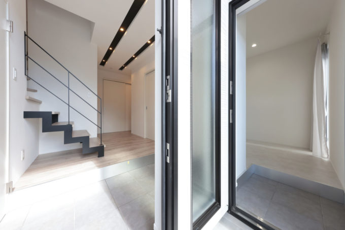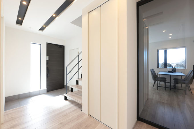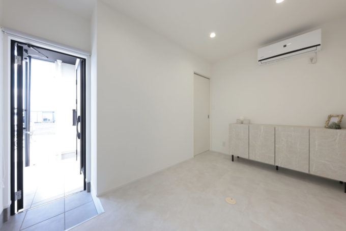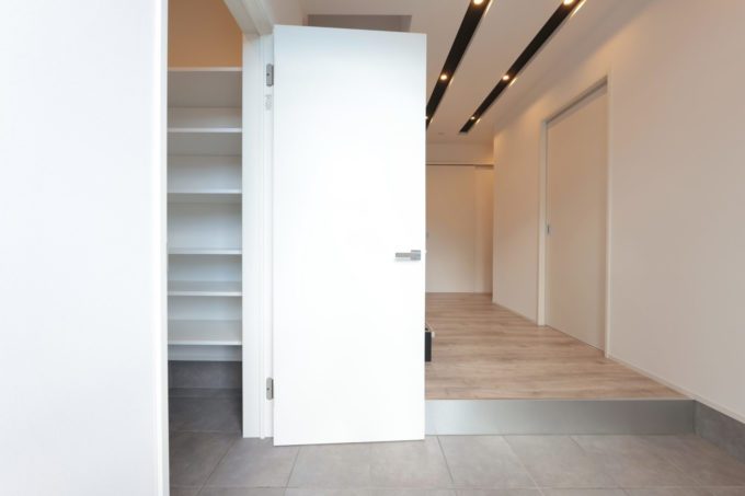 広々としたシューズクロークには扉をつけて、