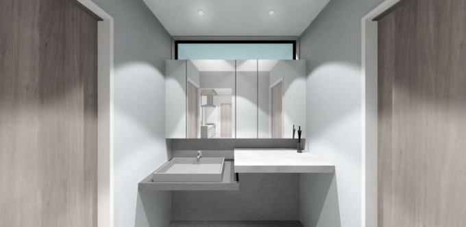 右側のスペースを広くとった洗面スペース🪞