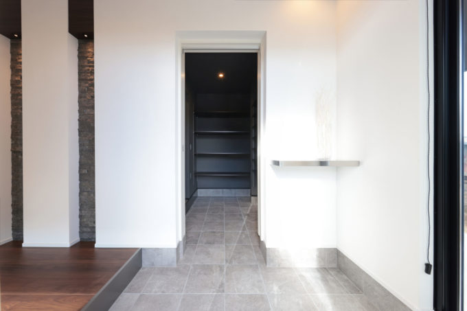 玄関→シューズクローク→パントリー→キッチン