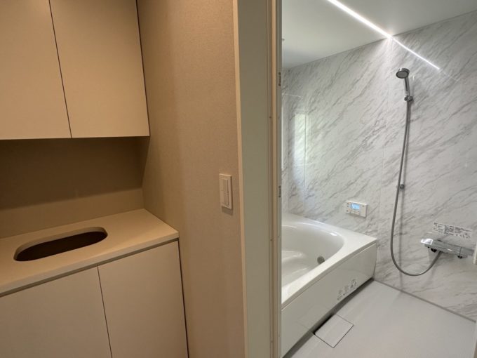 そして、キッチン裏から繋がる水廻り空間.。o○