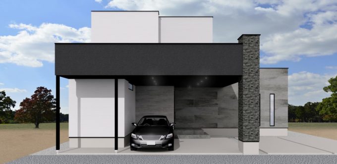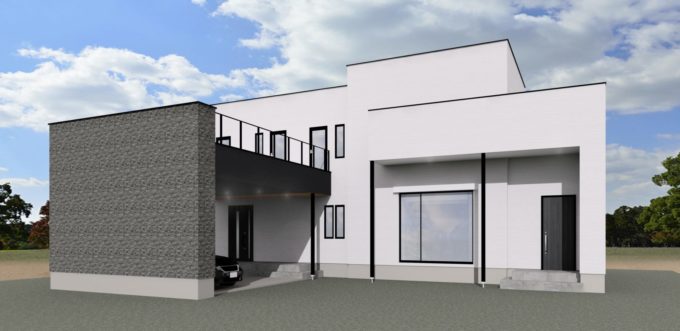 ホワイト・ブラックのシンプルモダンな外観。