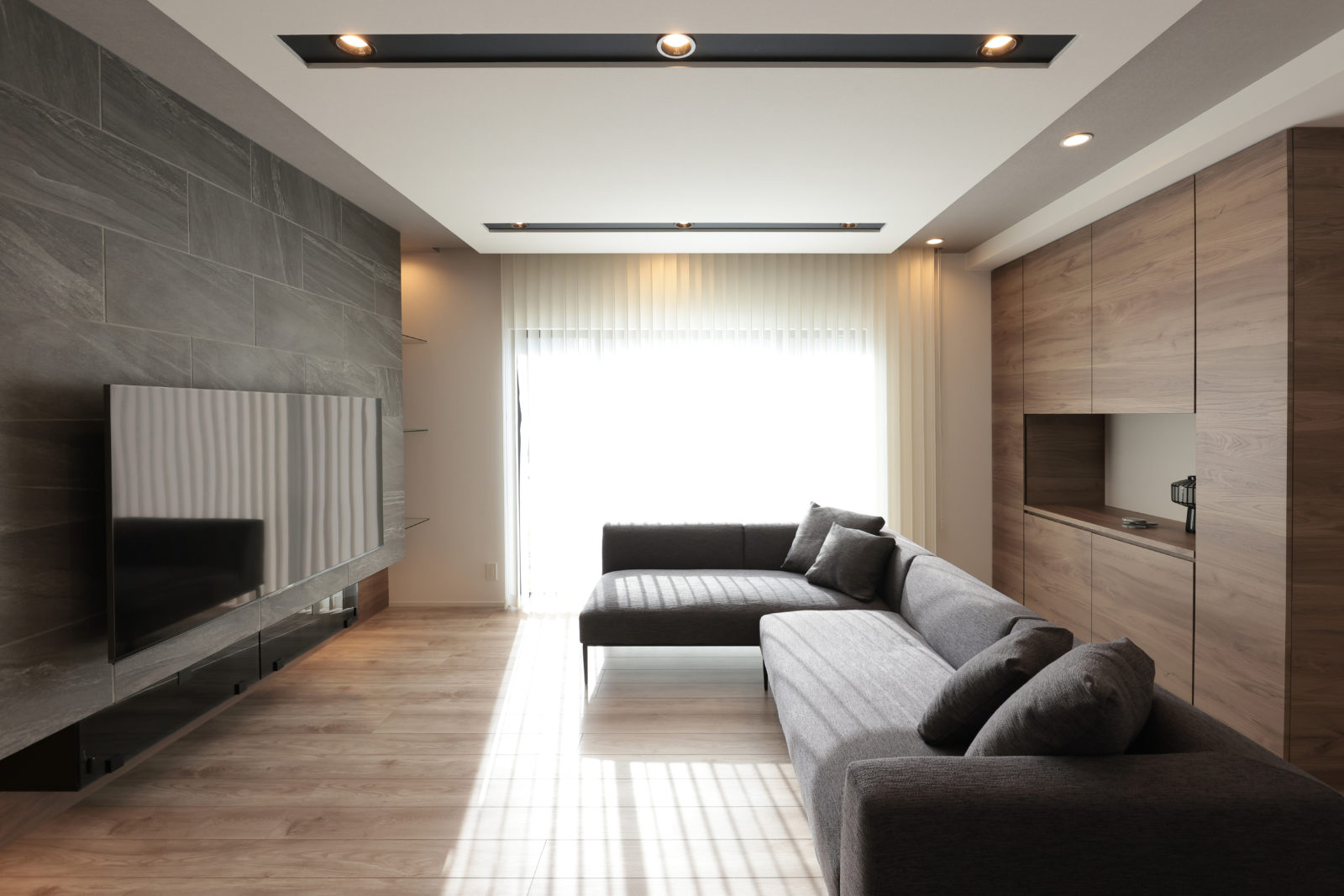 石張りや天井のブラックラインがPOINTに…